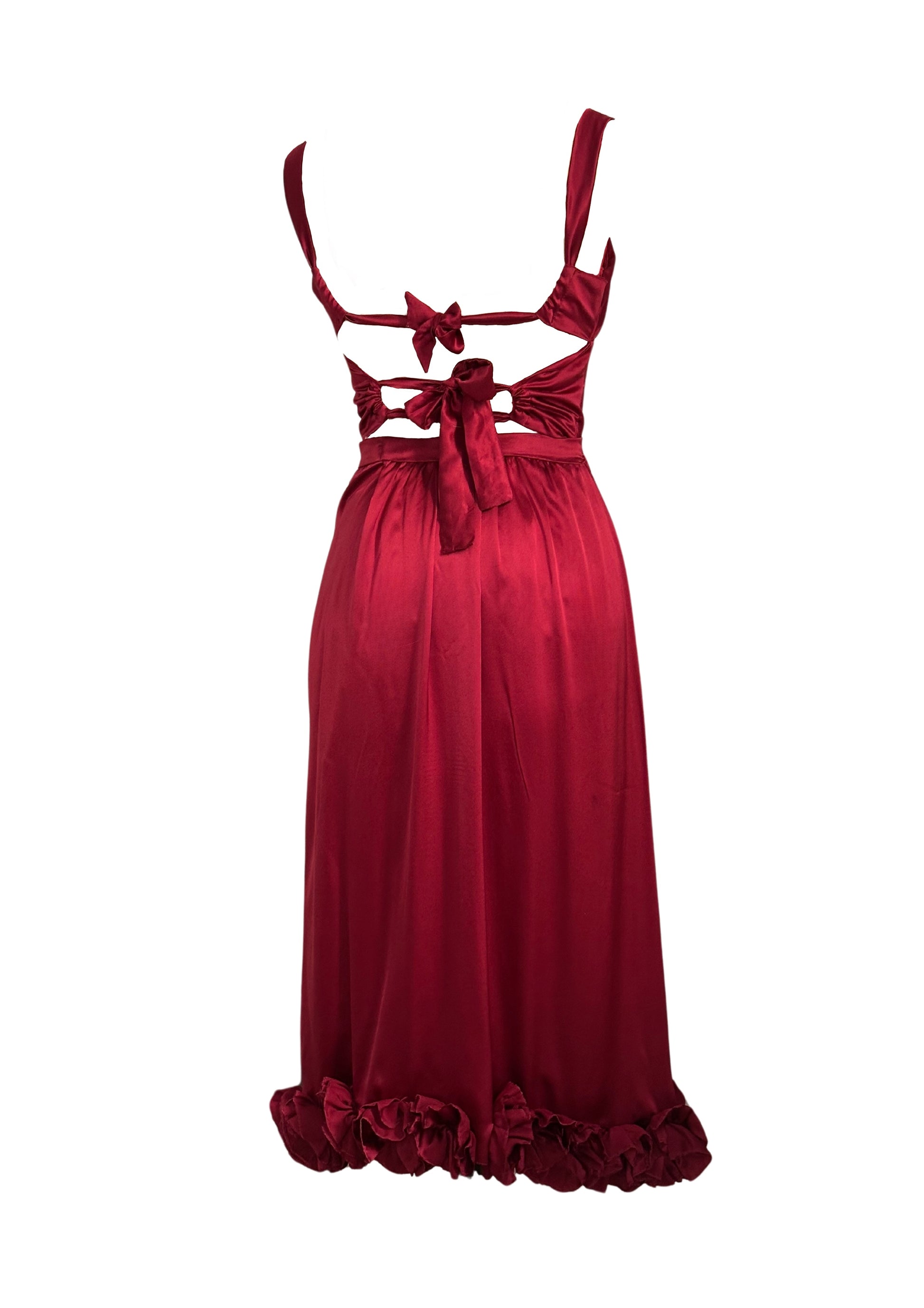 Le top se règle au moyen de liens dans le dos, tandis que la jupe intègre un élastique ajustable dissimulé à l’intérieur, au niveau de la taille arrière, pour un ajustement personnalisé.