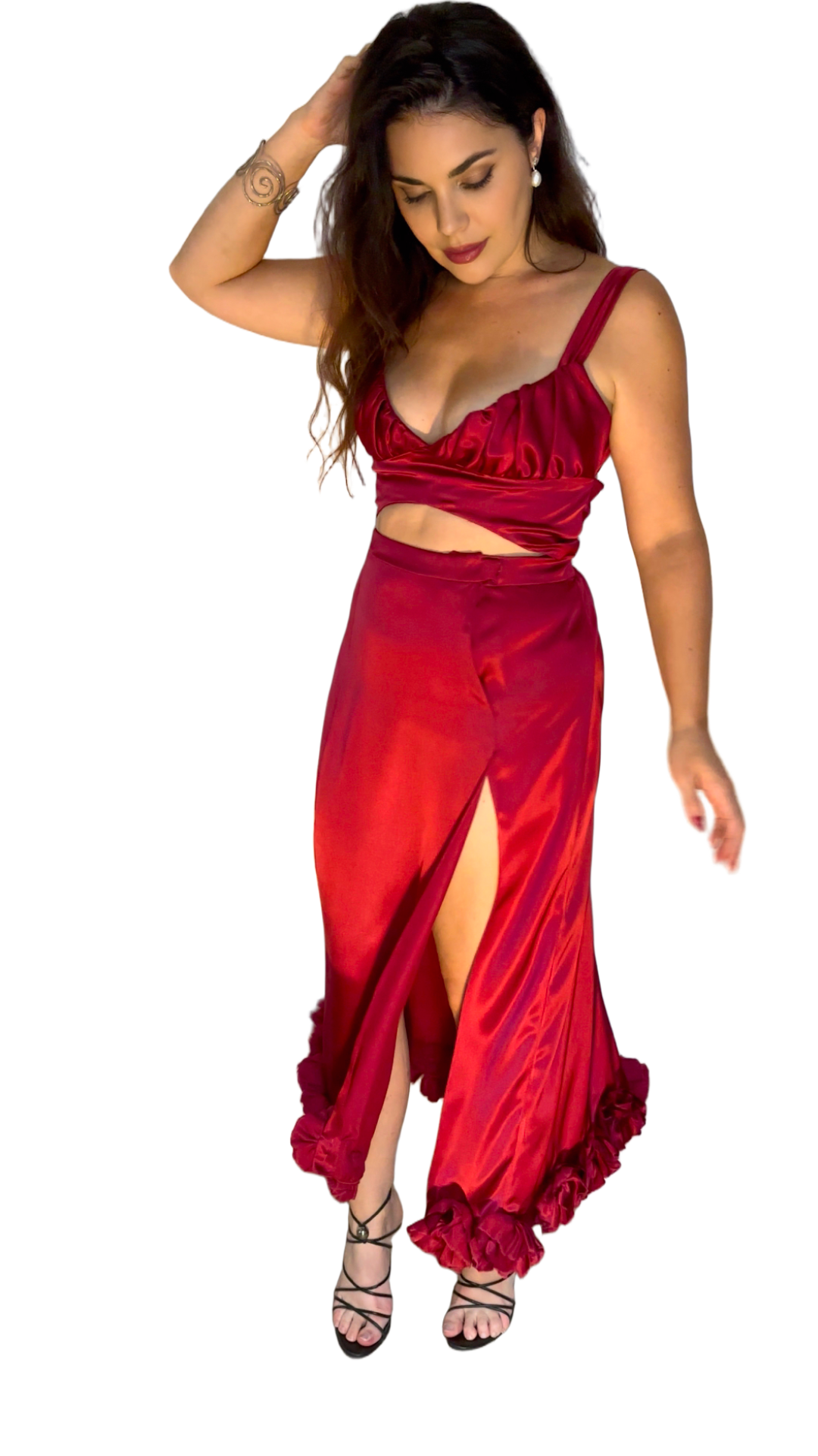 Comment styliser la jupe en journée et en soirée? Optez pour un collant en dentelle noire et complétez avec une sous-robe en dentelle. Pour le soir, associez-la à notre top spécialement conçu pour créer un ensemble harmonieux, mettant en valeur le décolleté avec élégance.