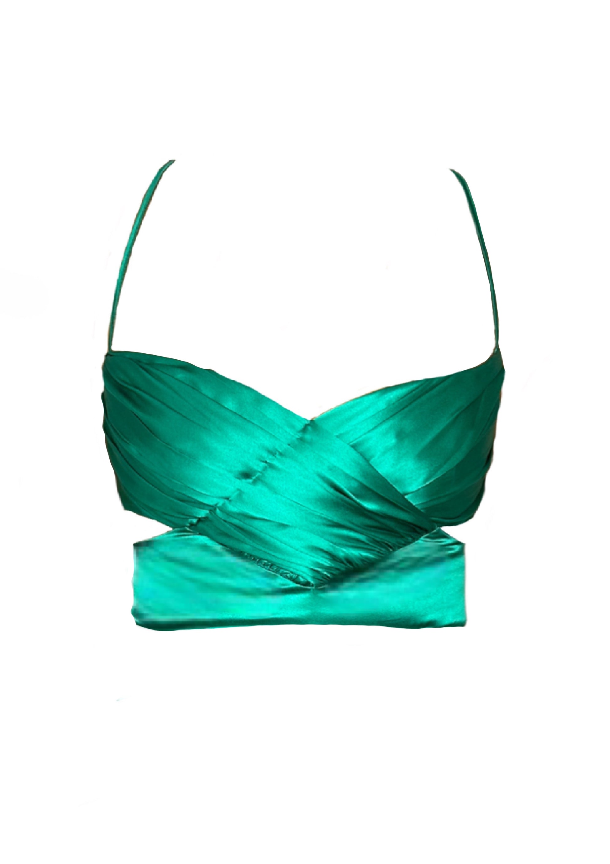 Le top Kyoto en soie vert émeraude présente un décolleté en V élégamment drapé (à la main)et croisé, agrémenté de fines bretelles. Sa coupe flatteuse s’adapte à la majorité des tailles de poitrine, mettant en valeur votre silhouette avec raffinement.